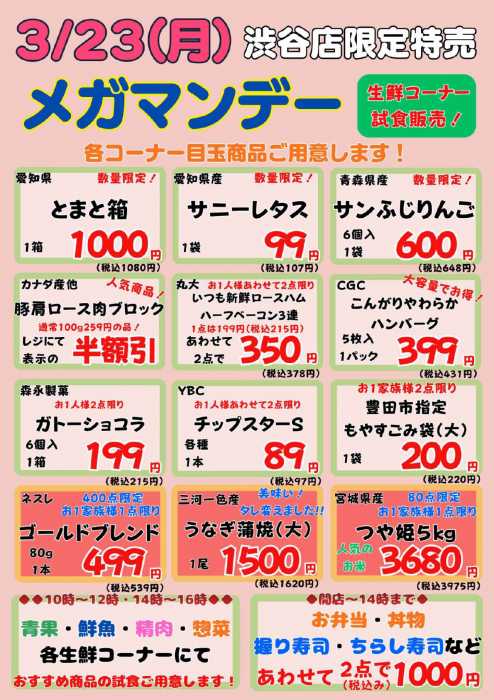 こちらのお店の情報は、チラシプラス運営会社のセブンネットが独自に収集した情報を掲載しています。最新情報と異なる可能性があることをご理解ください。掲載情報に間違いがございましたら、「こちら」よりご報告をお願いします。