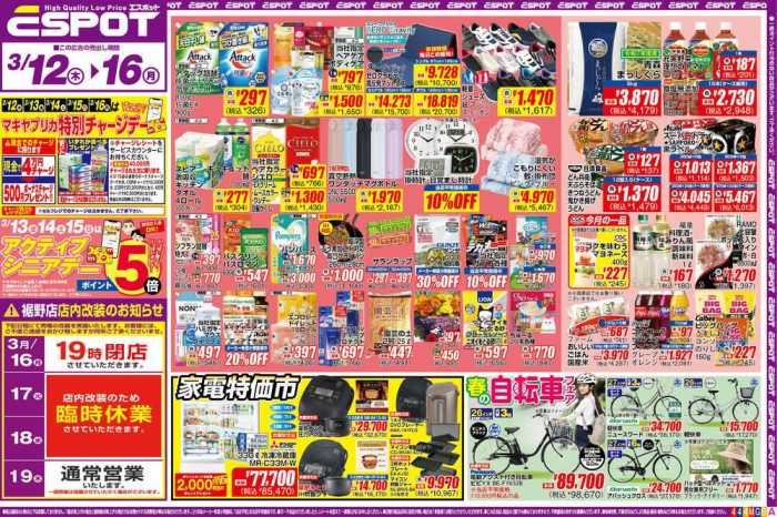 こちらのお店の情報は、チラシプラス運営会社のセブンネットが独自に収集した情報を掲載しています。最新情報と異なる可能性があることをご理解ください。掲載情報に間違いがございましたら、「こちら」よりご報告をお願いします。