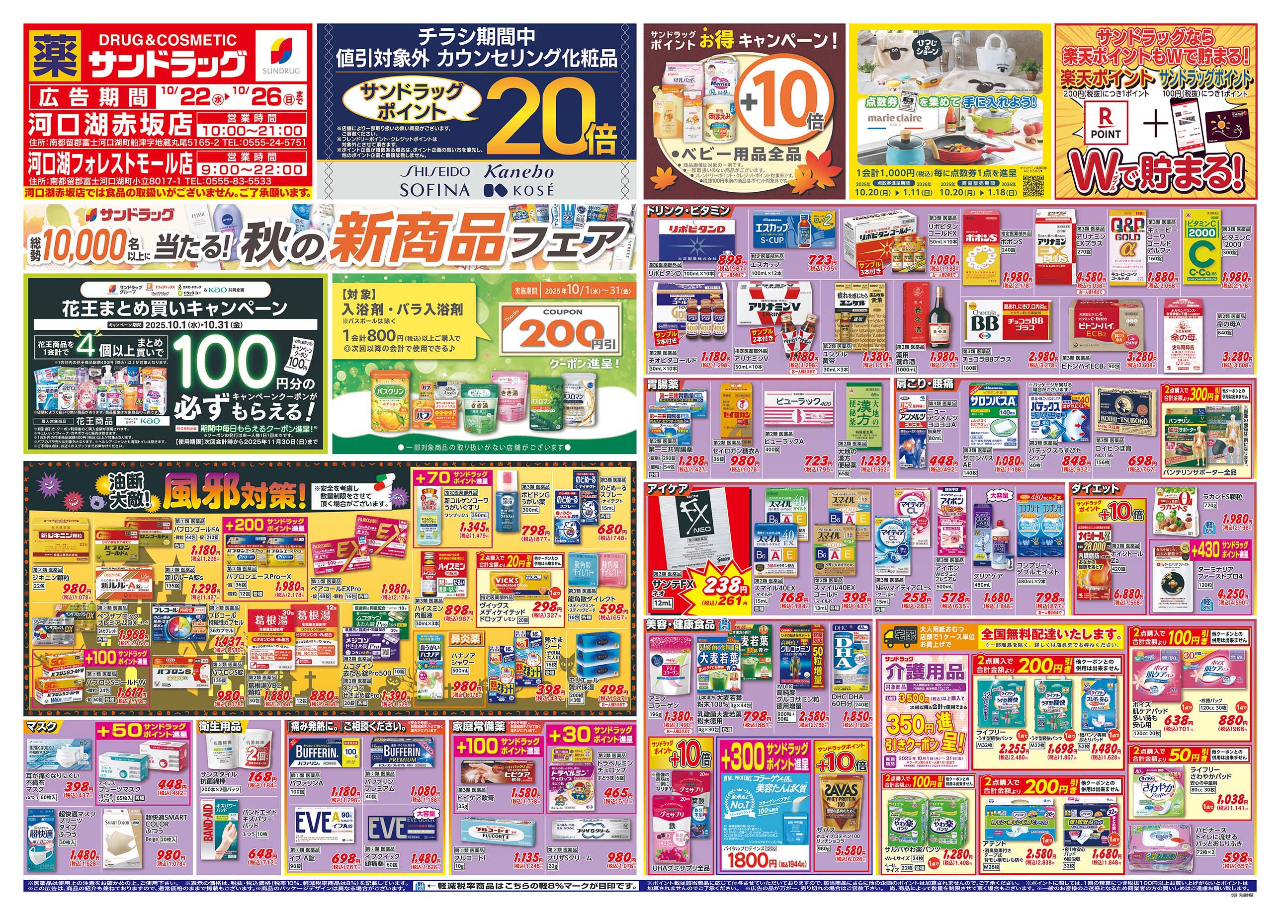 サンドラッグ 河口湖フォレストモール店 周辺で本日チラシを掲載している店舗