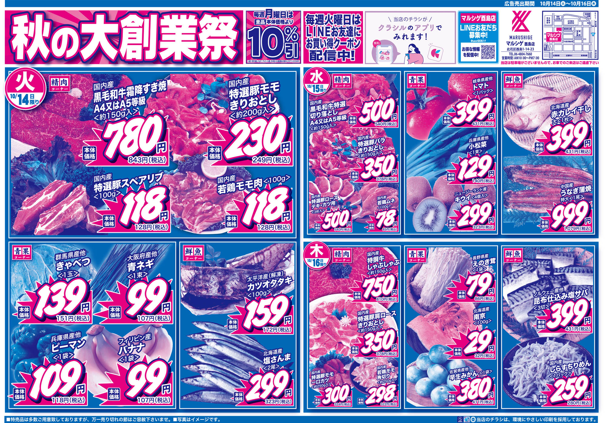 マルシゲ 酉島店 周辺で本日チラシを掲載している店舗
