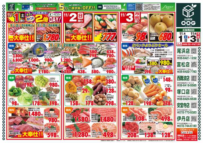 スーパーオオジ 伊丹安堂寺店 周辺で本日チラシを掲載している店舗